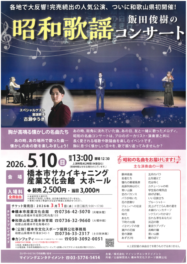 ●チケット:橋本市サカイキャニング産業文化会館で販売します